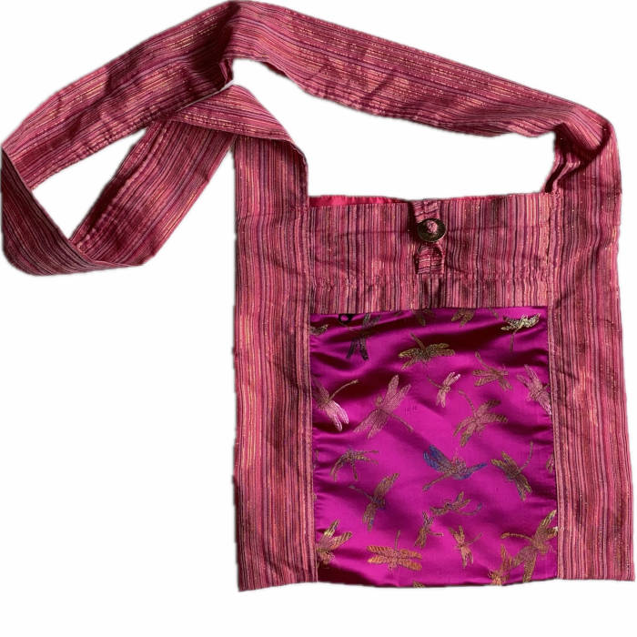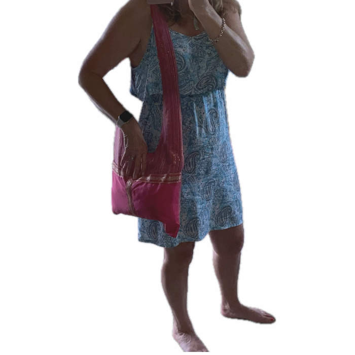 Boho Fabric Shoulder Bag is so adorable and comfortable on the shoulder. Perfect for a vegan or vegetarian as there is no leather in this bag. This product will not leave a plastic residue either as it is fabric and organic.