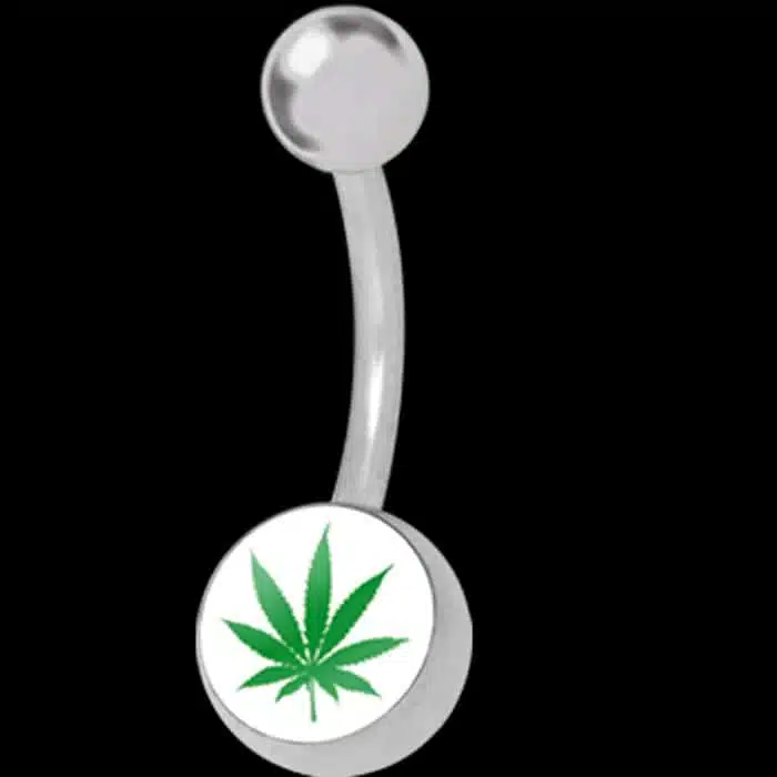 Leaf Belly Piercing Jewellery features a green leaf picture on the bottom ball. It looks just like a picture of a tomato plant. This Leaf Belly Piercing jewellery is perfect if you want to make a wee statement or like to grow tomatoes. Great for a bit of fun and naughtiness. It is 14 gauge and 8 mm in length, which is the standard size for belly piercings, that have healed. It is recommended to pierce with a 10 mm bar. So this item is not suitable for an initial piercing.