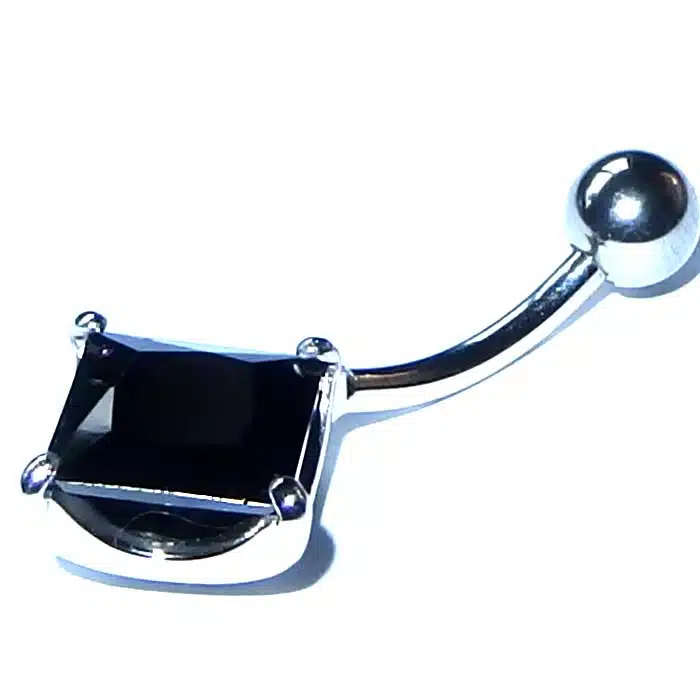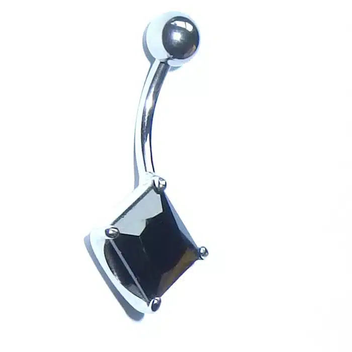 Square crystal belly bar is a simple design and gorgeous. It is 14 gauge and 10 mm in length. This is the standard size for belly piercings. Stones are real crystal and come in two colours. We love this Belly piercing jewellery and our customers do too. It is simple and plain. This Square Crystal Belly Bar is also safe as it is not too big and will not catch on things easily.