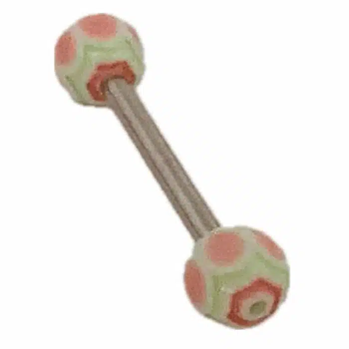 Barbell style piercing jewellery is composed of a straight bar with a ball on each end. One or both beads is unscrew-able. Perfect for removal and changing of the balls. With this barbell, both balls unscrew for ease and usefulness.