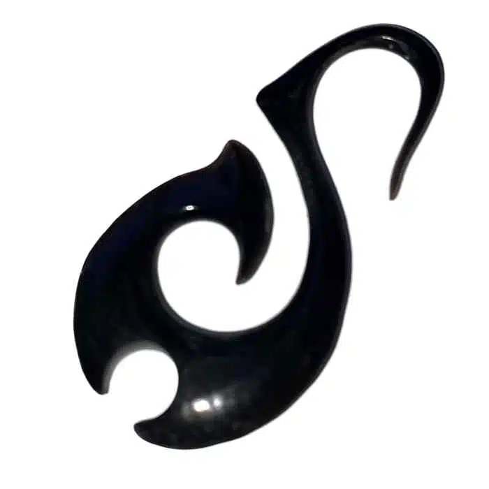 Maori Hook Ear Stretcher is handmade from buffalo horn. It is just like a Maori Hei Matau carved hook necklace but it is for a stretched ear. The great thing is it is only 2mm thickness so it is not much of a stretch at all. It is not difficult to go from a one mm standard piercing to the small increment of 2mm.