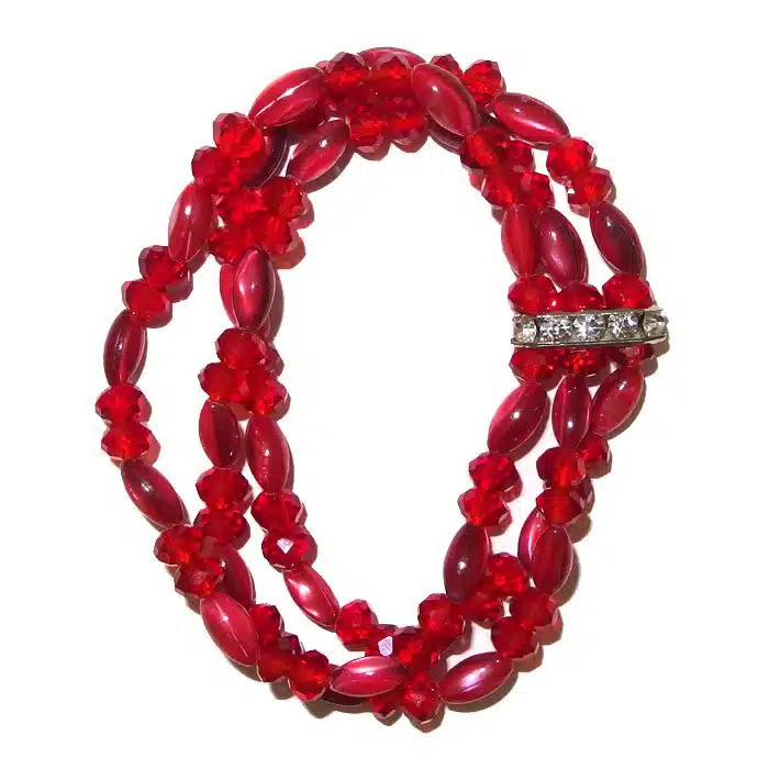 Crystal Stone Bead Bracelet comes in vibrant colours and are a beautiful statement piece. Multiple strands of coloured sparkly beads linked by a diamanté loop. There are five colours to choose from. Just pick your favourite!