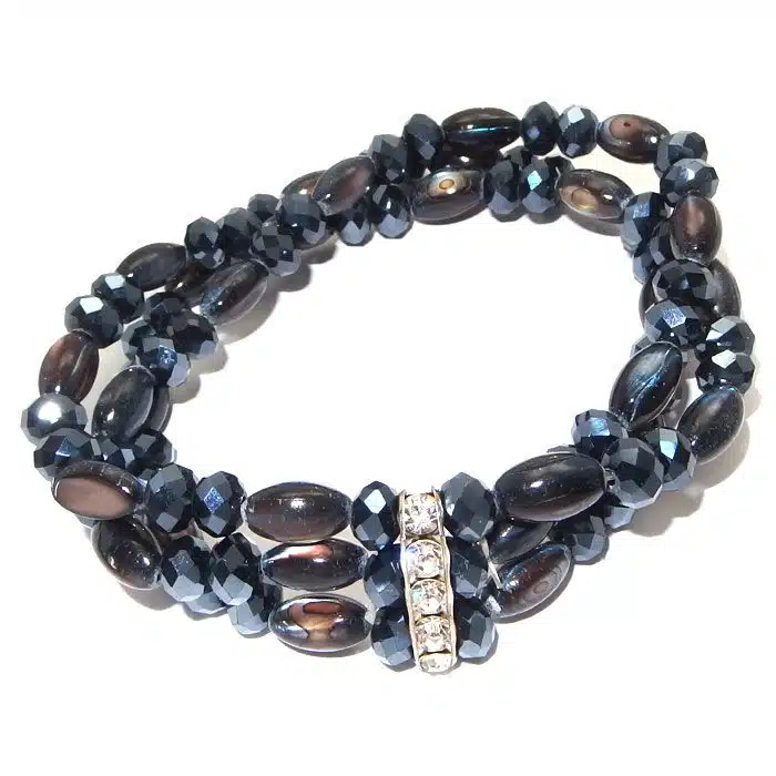 We also recommend that you put the bracelet on correctly to ensure you do not snap the elastic. We want this bracelet to last! Whatever you do, do not pull on one end of the bracelet to form a triangle and massively stretch it over your hand. It stresses the elastic and eventually, it will snap. To keep your bracelet in tip top shape, simply roll the beads over your wrist, stretching the elastic as little as possible.