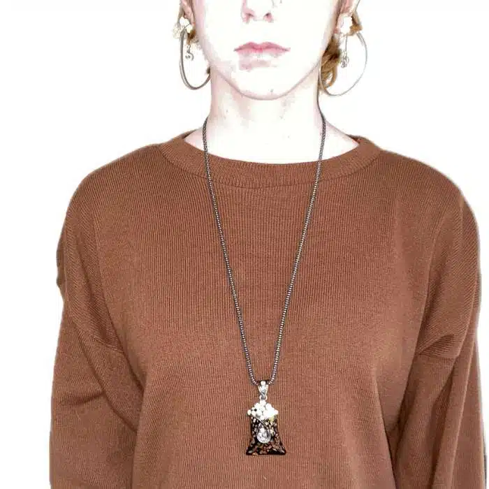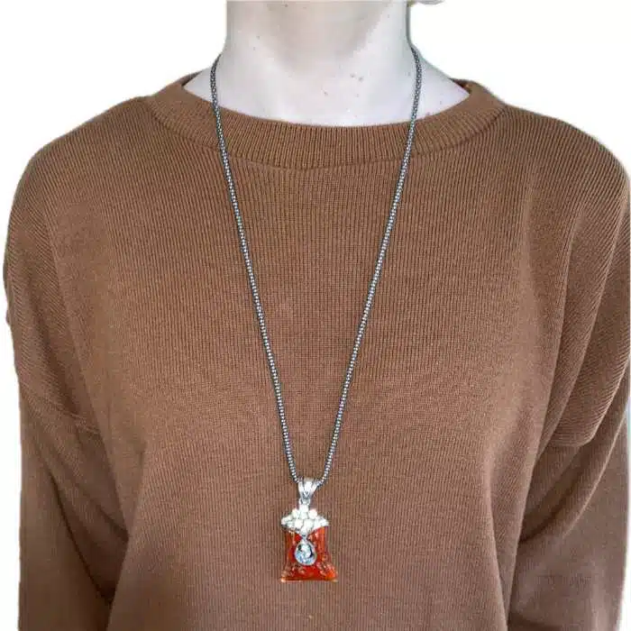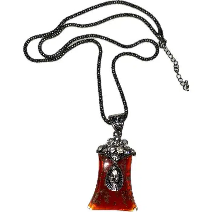 Glass Pendant Necklace features a thick snake chain holding a beautiful hand-made foiled glass pendant. The dichroic glass within the pendant has silver foil pieces within it, making every pierce unique. The dichroic glass pendant necklace comes in multiple colours, just choose your favourite. There’s a colour for every outfit and style.