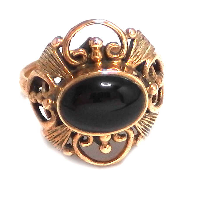 Vintage Bronze Gold Ring makes a bold chunky statement. Perfect ring to wear on its own. Popular and so much like real gold. This ring is ornate and intricate with a gorgouse centre stone.