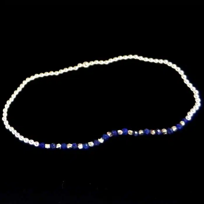 This Lapis Lazuli Stretch Bracelet also have beads made from sterling silver and features a 92.5 stamp. This means it is 92.5% fine silver with no more than 7.5% of copper or other metals. This formula is internationally accepted and it gives sterling silver the hardness and the tolerance to work with. Anything higher than 92.5 would be too soft and tarnish too quickly. When you buy sterling silver from us, we can guarantee it is just that!