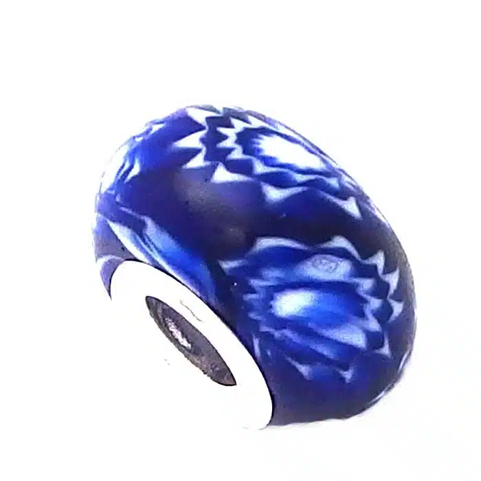 Blue flower Glass Bead has an sterling silver 92.5 internal section. This Murano glass bead is Pandora compatible, meaning it will fit onto your Pandora and Camilla styled bracelets. You can also choose our snake bracelet. It does not have the branding which helps it to be cheaper. They are a great way to add some colour into your bracelets.