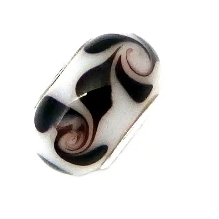 The internal section of the Brown Swirled Murano Glass Bead is made from sterling silver and features a 92.5 stamp. This means it is 92.5% fine silver with no more than 7.5% of copper or other metals. This formula is internationally accepted and it gives sterling silver the hardness and the tolerance to work with. Anything higher than 92.5 would be too soft and tarnish too quickly. When you buy sterling silver from us, we can guarantee it is just that!