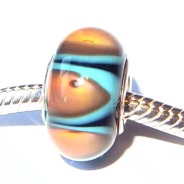 Sandy Beach Glass Bead with sterling silver 92.5 internal. This Murano glass bead is Pandora compatible, meaning it will fit onto your Pandora and Camilla styled bracelets. They are a great way to add some colour into your bracelets.