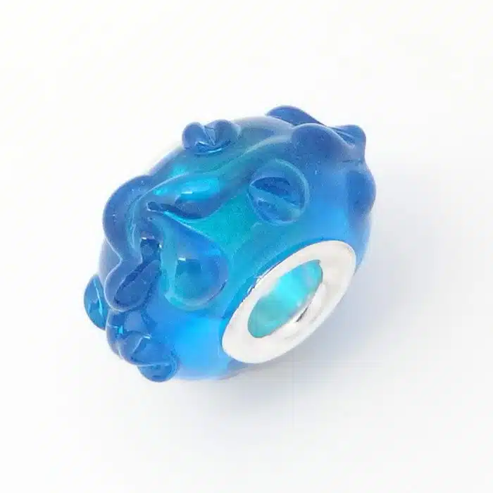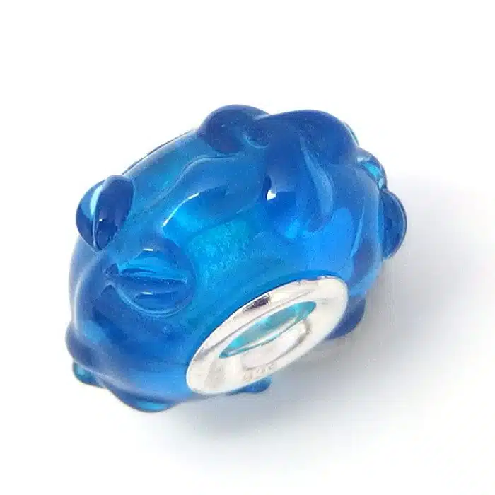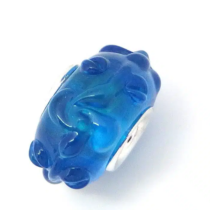 Sea spray murano bead with sterling silver 92.5 internal section. We love that this glass bead has raised sections. This sea spray murano bead is Pandora compatible, meaning it will fit onto your Pandora and Camilla styled bracelets. They are a great way to add some colour into your bracelets.