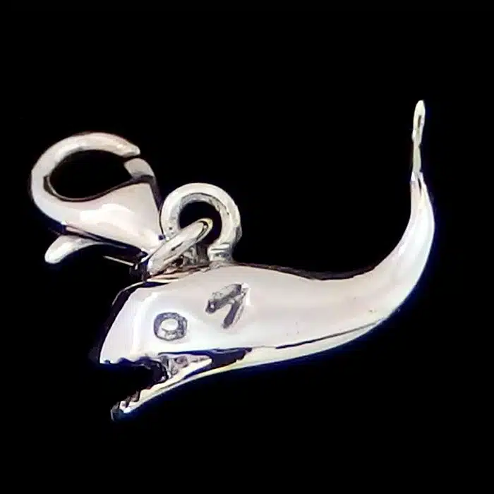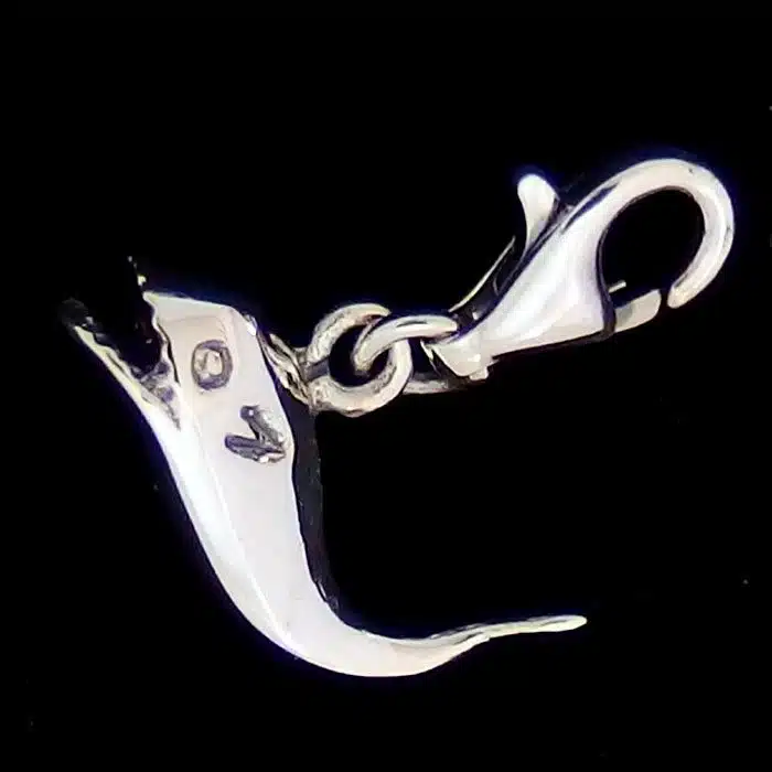 The Silver Whale Clip Charm is made from sterling silver and features a 92.5 stamp. This means it is 92.5% fine silver with no more than 7.5% of copper or other metals. This formula is internationally accepted and it gives sterling silver the hardness and the tolerance to work with. Anything higher than 92.5 would be too soft and tarnish too quickly. When you buy sterling silver from us, we can guarantee it is just that!