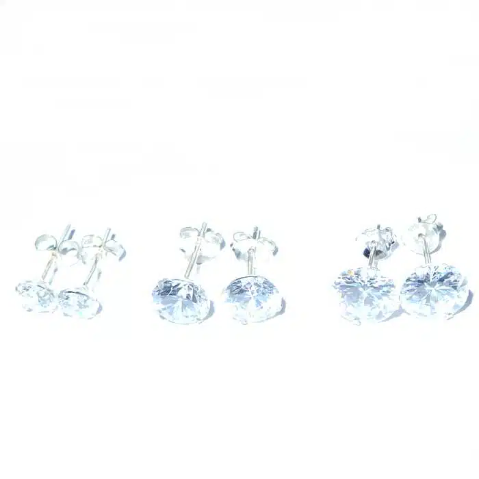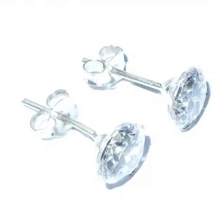 These CZ bling studs is made from sterling silver. The stud and butterfly features a 92.5 stamp. This means it is 92.5% fine silver with no more than 7.5% of copper or other metals. This formula is internationally accepted and it gives sterling silver the hardness and the tolerance to work with. Anything higher than 92.5 would be too soft and tarnish too quickly. When you buy sterling silver from us, we can guarantee it is just that!