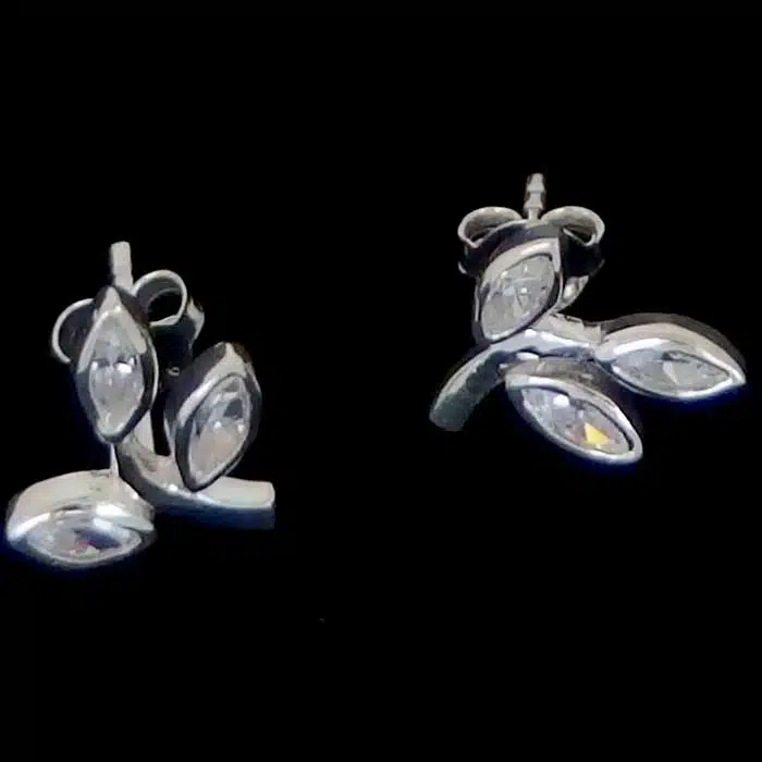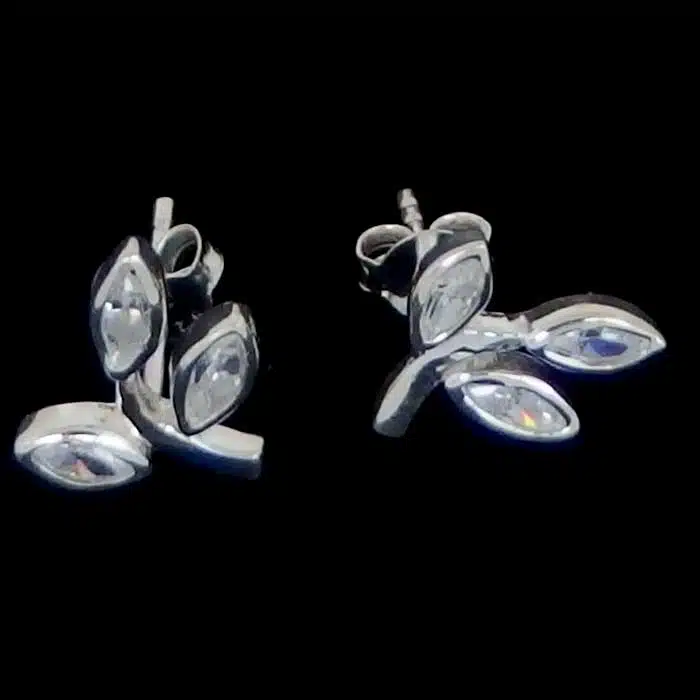 CZ leaf studs are sterling silver 92.5 and have three individual cubic zirconia jewels that are shaped into a leaves making a stunning pair of stud earrings. These Cubic zirconia Stud earrings look classy and very expensive.
