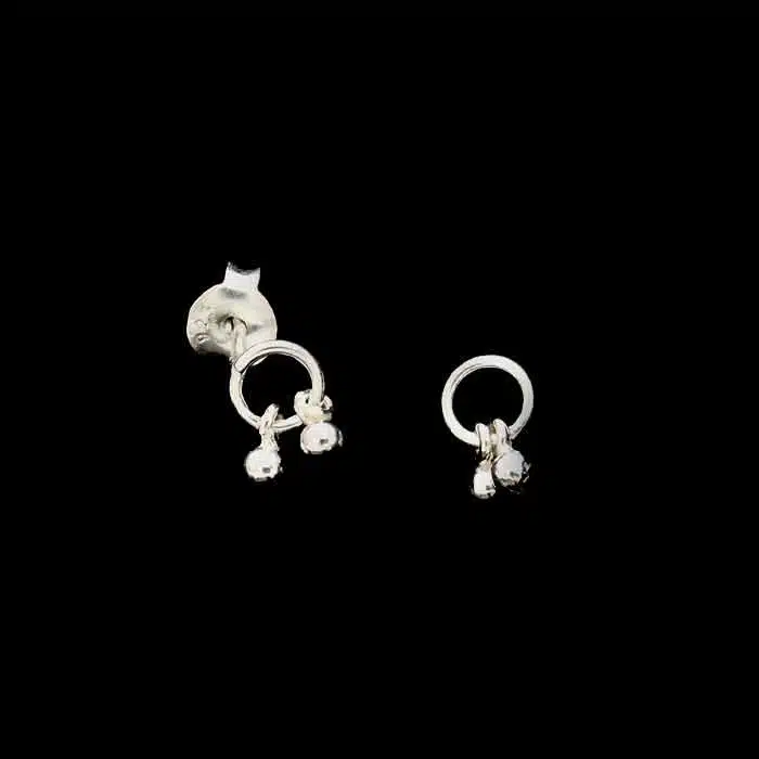 Dangle hoop stud earrings are sterling silver 92.5. Our customers love the circle it makes on the ear, with some cute dangling balls. Perfect mix of a hoop and a stud!