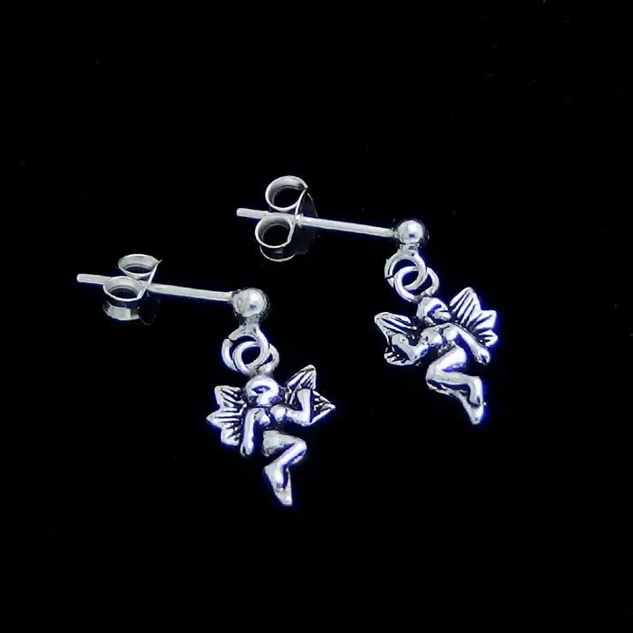 Fairy Stud Earrings Silver are made from sterling silver and features a 92.5 stamp. This means it is 92.5% fine silver with no more than 7.5% of copper or other metals. This formula is internationally accepted and it gives sterling silver the hardness and the tolerance to work with. Anything higher than 92.5 would be too soft and tarnish too quickly. When you buy sterling silver from us, we can guarantee it is just that!