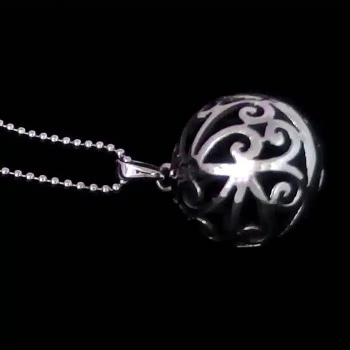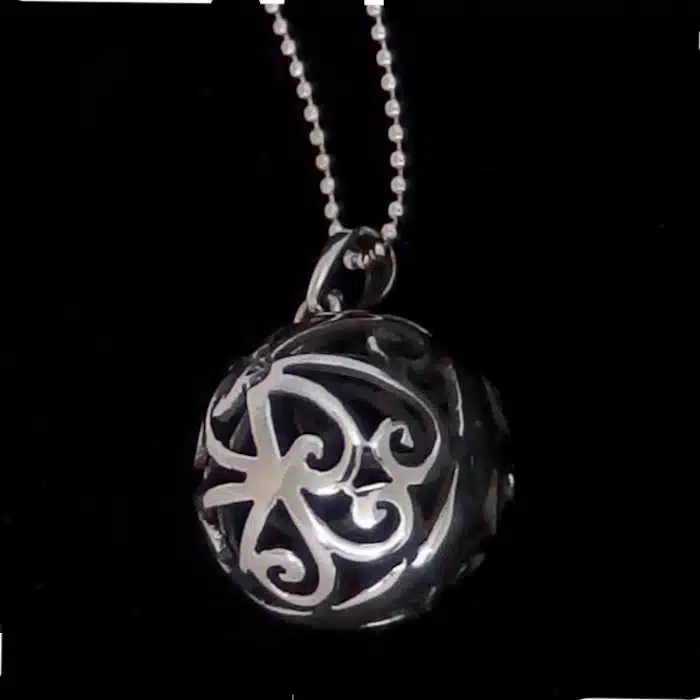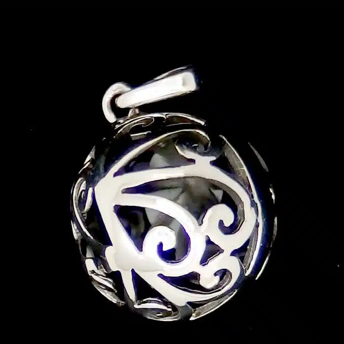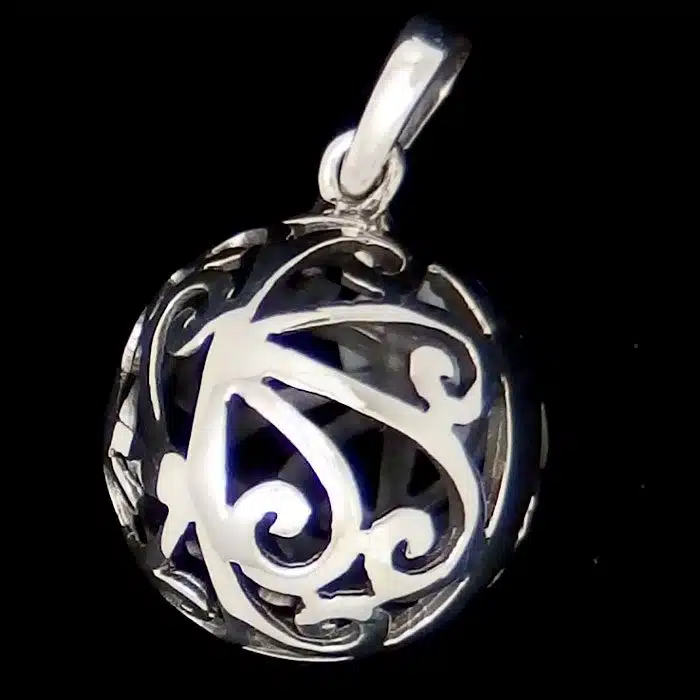 The filigree swirl ball pendant is made from sterling silver and features a 92.5 stamp, this means it is 92.5% fine silver with no more than 7.5% of copper or other metals. This formula is internationally accepted and it gives sterling silver the hardness and the tolerance to work with. Anything higher than 92.5 would be too soft and tarnish too quickly. When you buy sterling silver from us we can guarantee it is just that!