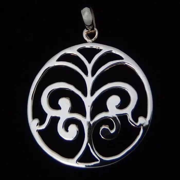 The fountain of life pendant features a pattern that reminds one of a fountain of life or tree of life. It is made with cut out spiral ajoure detailing.