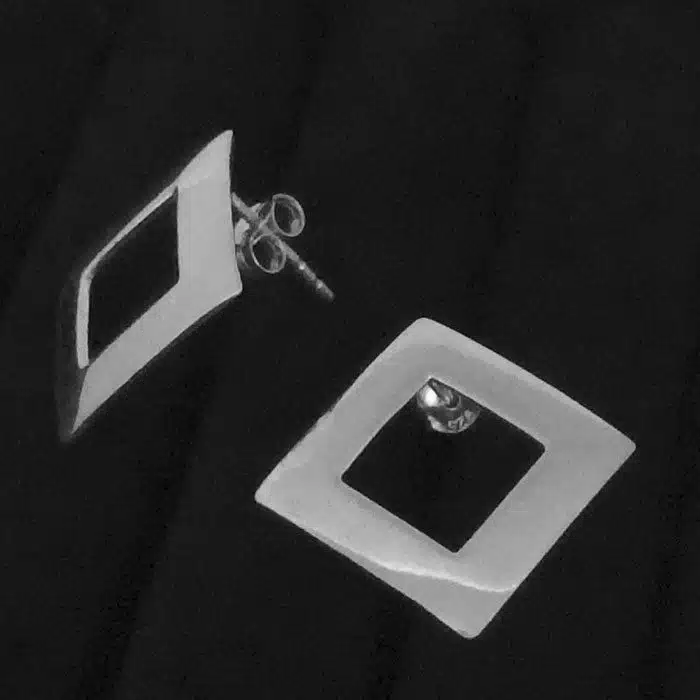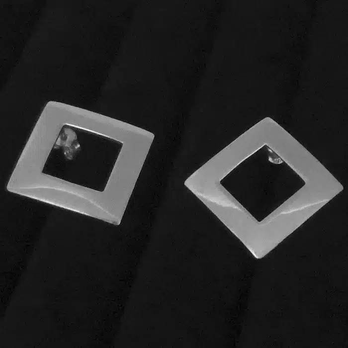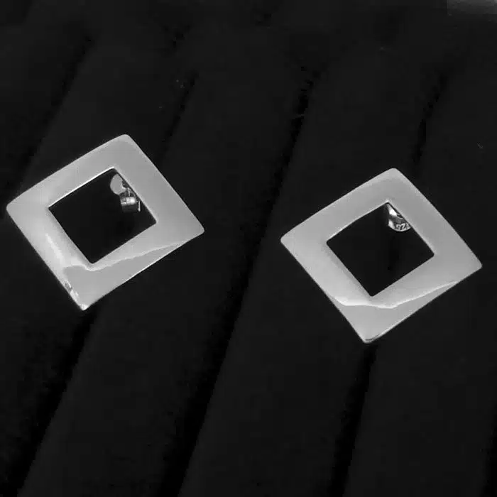 These large Square Stud Earrings are made from sterling silver and features a 92.5 stamp. This means it is 92.5% fine silver with no more than 7.5% of copper or other metals. This formula is internationally accepted and it gives sterling silver the hardness and the tolerance to work with. Anything higher than 92.5 would be too soft and tarnish too quickly. When you buy sterling silver from us, we can guarantee it is just that!
