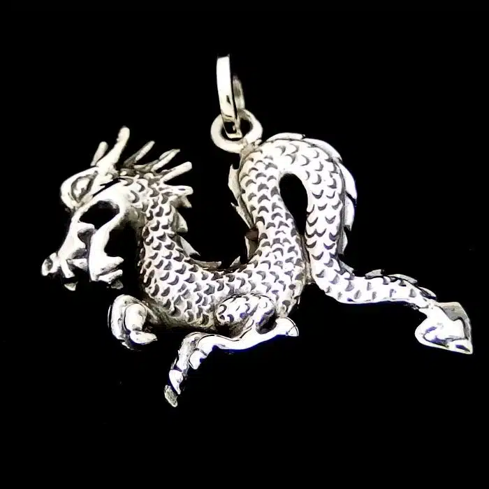 Mystic dragon pendant is made of real sterling silver 92.5. This Mystical Dragon Necklace has with oxidized detailing and just needs a chain added to complete the necklace. The dragon is also a symbol of power, strength, and good luck for people who are worthy of it. This Mystic Dragon Pendant contains a fierce, mystic strength with reptile looking skin.