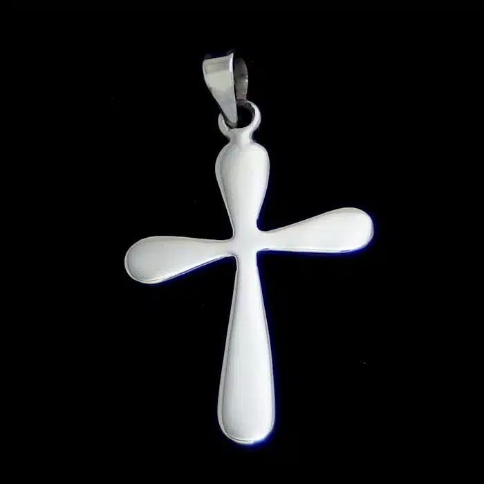 The rounded cross pendant is made from sterling silver and features a 92.5 stamp, this means it is 92.5% fine silver with no more than 7.5% of copper or other metals. This formula is internationally accepted and it gives sterling silver the hardness and the tolerance to work with. Anything higher than 92.5 would be too soft and tarnish too quickly. When you buy sterling silver from us we can guarantee it is just that!