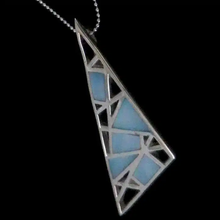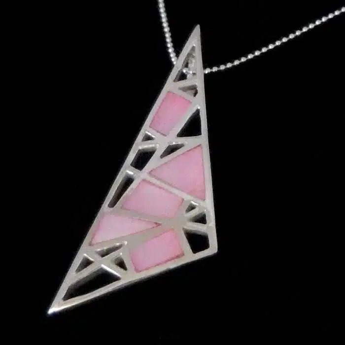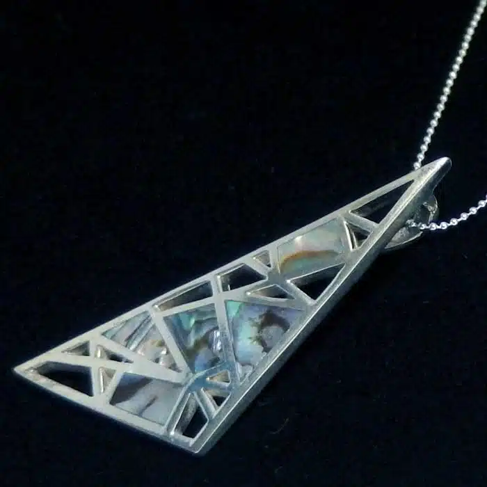 Mosaic Triangle Shell Pendant features real mother of pearl shell or paua shell. The pendant mount of the triangle shell pendant is securely soldered to the pendant itself and will take a thicker chain.