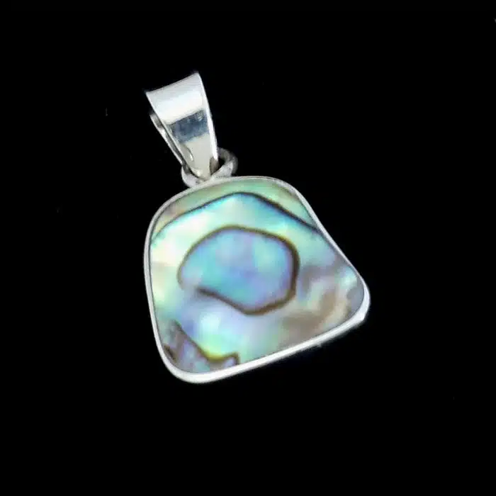 Paua shell pendant is encased in real sterling silver 92.5. We love the organic natural shape. It makes it look handmade with a non geometric setting. It is pleasing to the eye to have no sharp edges. The encased shell is real Paua. In some countries it is called abalone. In New Zealand we have an abundance of paua especially in the South Island. The colour of New Zealand paua shell is more deep and blue.