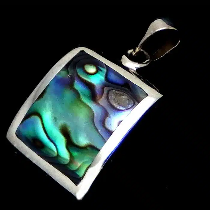 Square shell pendant necklace comes in many different colours and types of shell. The Shell is pink or white mother of pearl, Paua, or synthetic onyx. Has a large pendant mount for thicker chains.