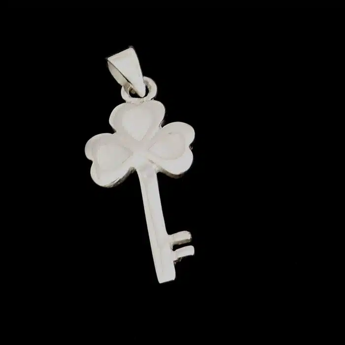 The heart key pendant is made from sterling silver and features a 92.5 stamp, this means it is 92.5% fine silver with no more than 7.5% of copper or other metals. This formula is internationally accepted and it gives sterling silver the hardness and the tolerance to work with. Anything higher than 92.5 would be too soft and tarnish too quickly. When you buy sterling silver from us we can guarantee it is just that!