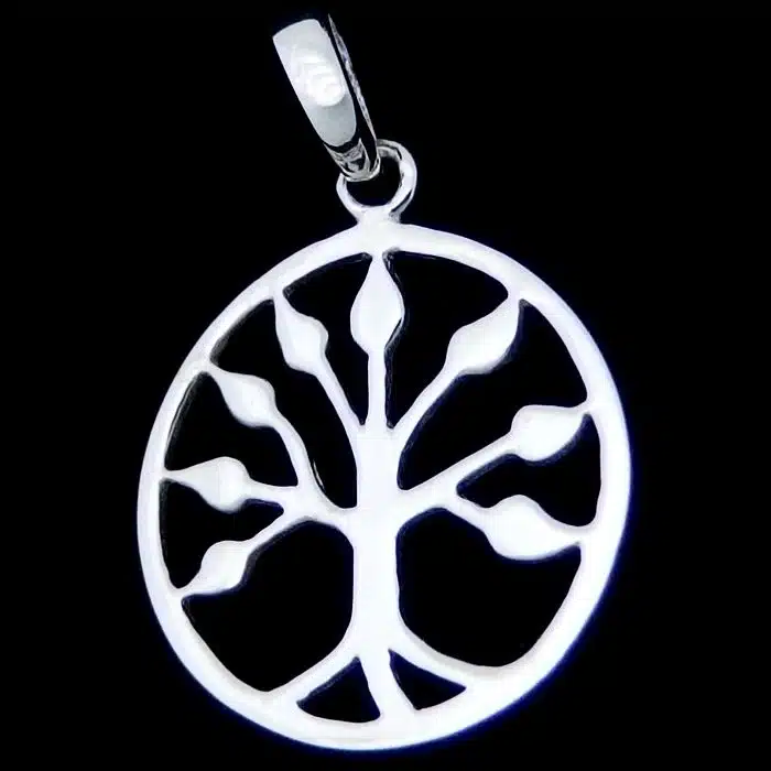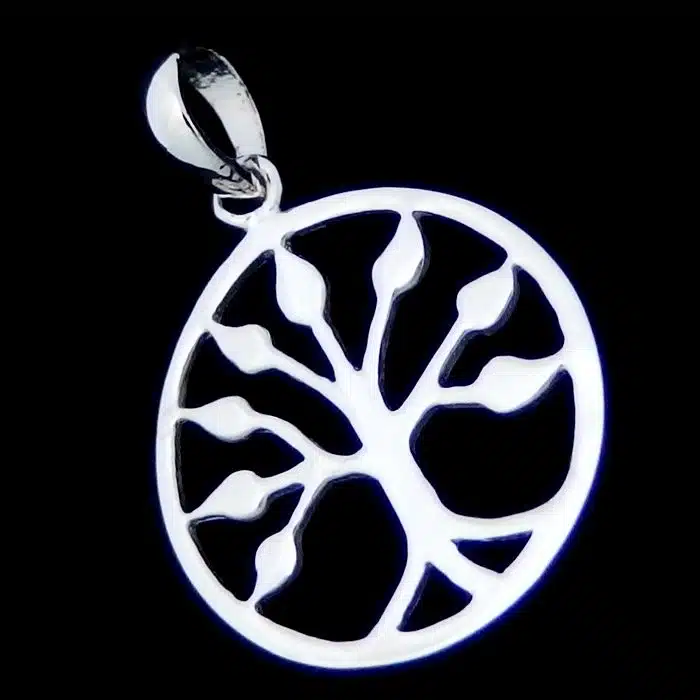 The tree of life pendant is made from sterling silver and features a 92.5 stamp. This means it is 92.5% fine silver with no more than 7.5% of copper or other metals. This formula is internationally accepted and it gives sterling silver the hardness and the tolerance to work with. Anything higher than 92.5 would be too soft and tarnish too quickly. When you buy sterling silver from us, we can guarantee it is just that!