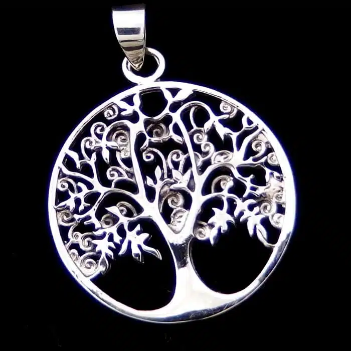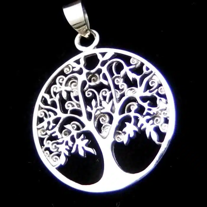 This tree of life pendant is made from sterling silver. It features a 92.5 stamp. This means it is 92.5% fine silver with no more than 7.5% of copper or other metals. This formula is internationally accepted and it gives sterling silver the hardness and the tolerance to work with. Anything higher than 92.5 would be too soft and tarnish too quickly. When you buy sterling silver from us, we can guarantee it is just that!