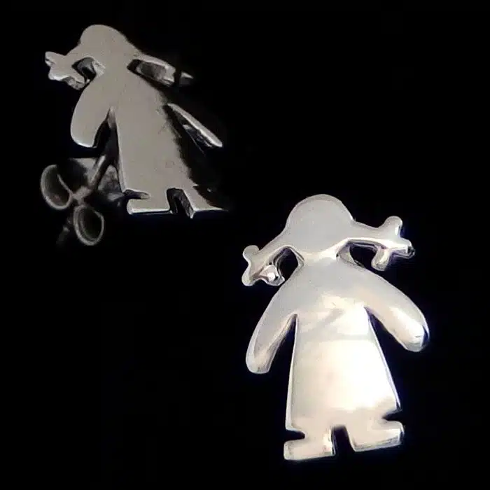 Pipi Girl silver studs. A classic young girl silhouette with cute pig tails! Pipi girl is ready to rock!!