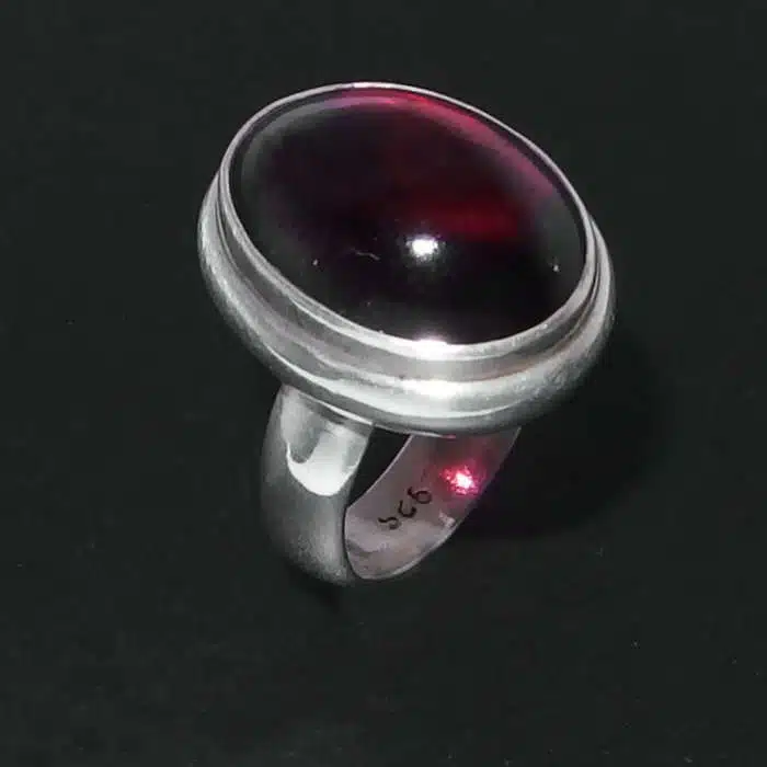 The Real Garnet Silver Ring is made from sterling silver and features a 92.5 stamp. This means it is 92.5% fine silver with no more than 7.5% of copper or other metals. This formula is internationally accepted and it gives sterling silver the hardness and the tolerance to work with. Anything higher than 92.5 would be too soft and tarnish too quickly. When you buy sterling silver from us, we can guarantee it is just that!