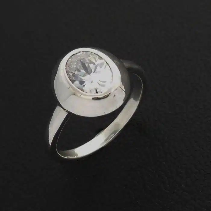 Bordered oval CZ ring is sterling silver 92.5 and has a full bezel setting. This means the CZ is completely surrounded by silver. The stone is oval cubic zirconia ring has a choice of colours. We love that the cubic zirconia is large and will stand out on your hand.