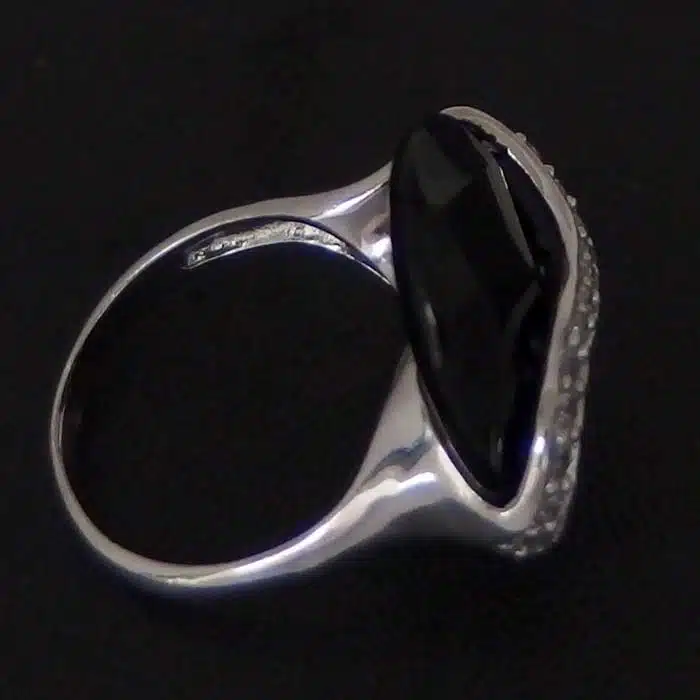 The Large Cubic Zirconia Ring ring is made from sterling silver and features a 92.5 stamp. This means it is 92.5% fine silver with no more than 7.5% of copper or other metals. This formula is internationally accepted and it gives sterling silver the hardness and the tolerance to work with. Anything higher than 92.5 would be too soft and tarnish too quickly. When you buy sterling silver from us, we can guarantee it is just that!