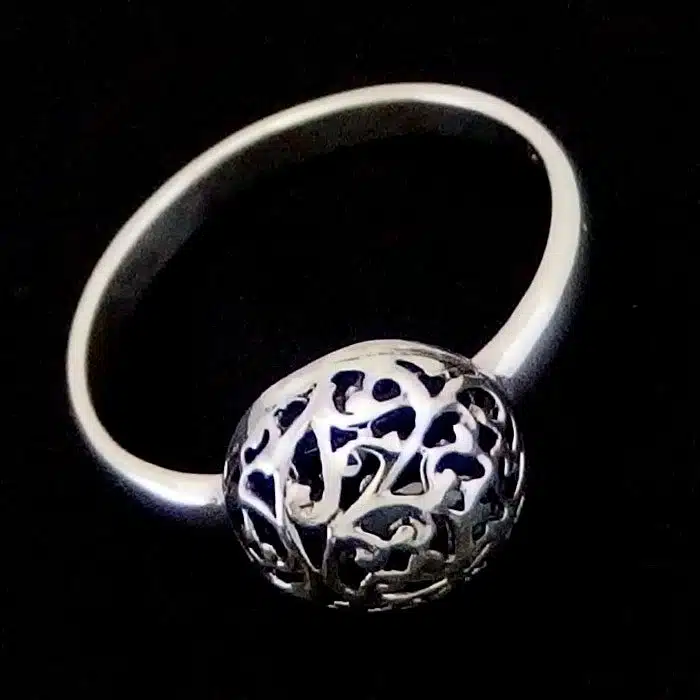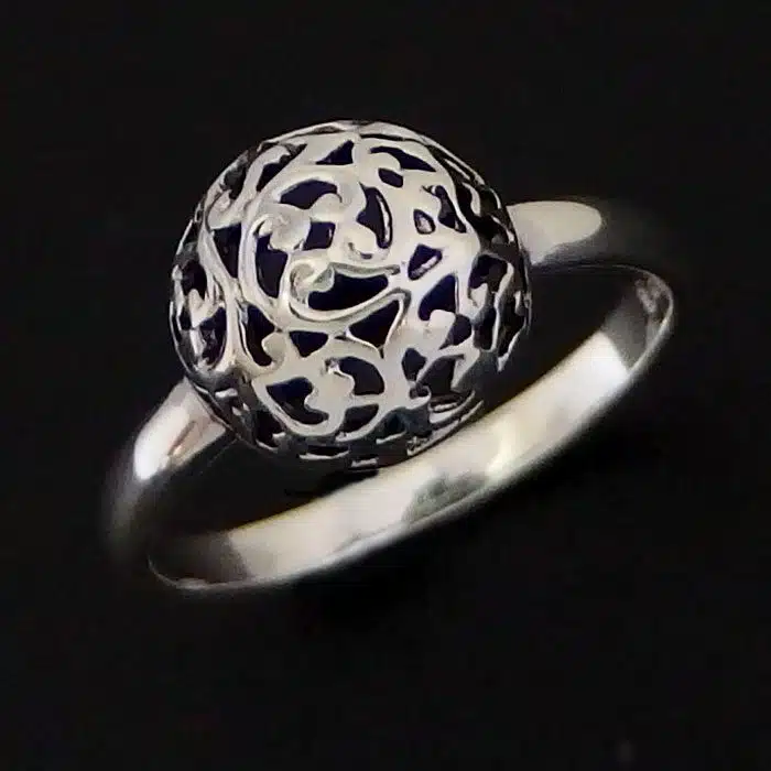 Ajoure Half ball ring is a filigree style and is made of sterling silver 92.5. This 3D semicircle with ajoure detailing on top of a 2mm band. Beautiful detailing in this ring. This silver filigree ring is very popular in NZ.
