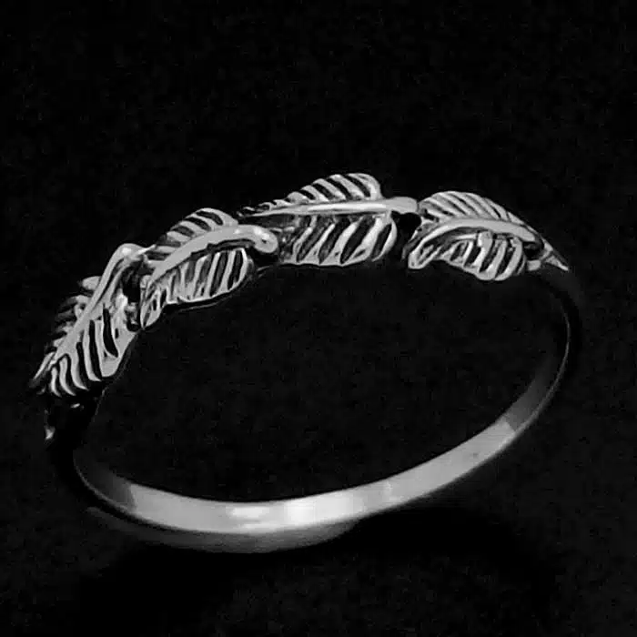 Autumn Leaves Ring Sterling Silver 92.5. This delightful ring features small and sweet leaves placed around a plain band. The detailing of the leaf veins can even be seen on this ring. Perfect for a nature lover or someone who enjoys the outdoors or gardening. It even is in pinkie finger sizes.