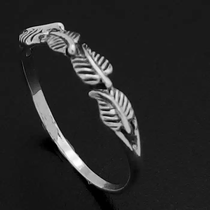 This Autumn Leaves Ring is made from sterling silver and features a 92.5 stamp. This means it is 92.5% fine silver with no more than 7.5% of copper or other metals. This formula is internationally accepted and it gives sterling silver the hardness and the tolerance to work with. Anything higher than 92.5 would be too soft and tarnish too quickly. When you buy sterling silver from us, we can guarantee it is just that!