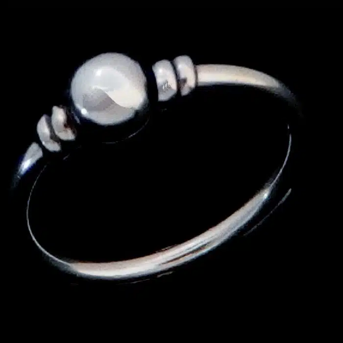 Bali hoop ring looks just like a Bali hoop sleeper but you can wear it on your finger. Bali Hoop Ring is sterling silver 92.5. We are just loving this ring variation and this new concept. The ball in the centre is highly polished and the ridges to each side set it off.