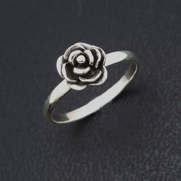 Beautiful raised silver rose ring is made from sterling silver and features a 92.5 stamp. This means it is 92.5% fine silver with no more than 7.5% of copper or other metals. This formula is internationally accepted and it gives sterling silver the hardness and the tolerance to work with. Anything higher than 92.5 would be too soft and tarnish too quickly. When you buy sterling silver from us, we can guarantee it is just that!