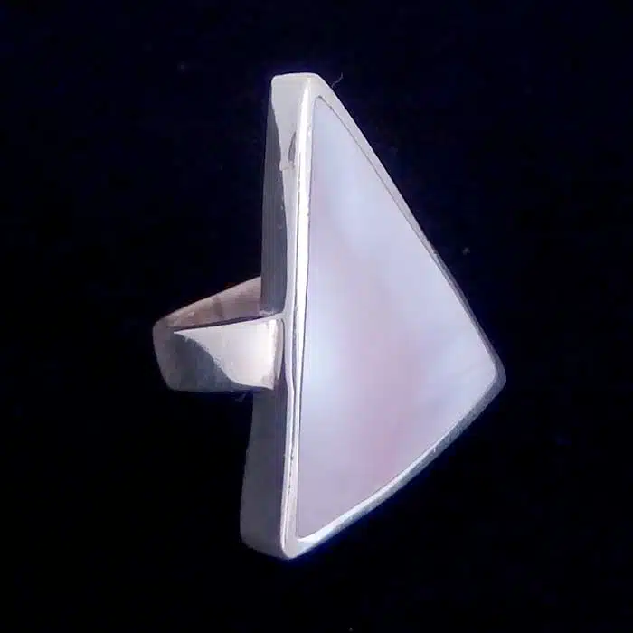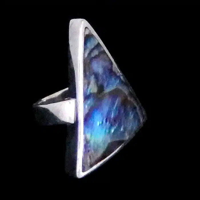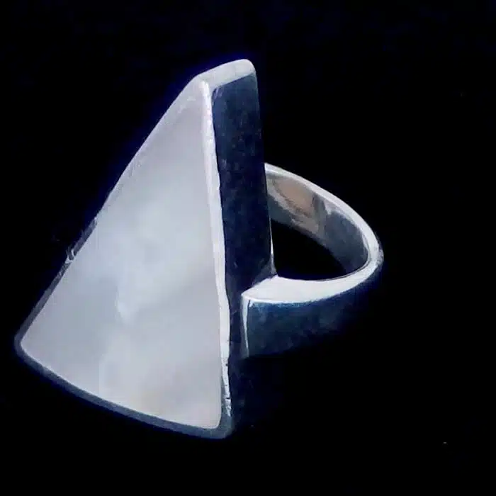 Large triangle shell ring is real sterling silver 92.5. Shell is mother of pearl (dyed or left natural) or Paua. Perfect as a long finger shell ring as it will cover much of the finger.