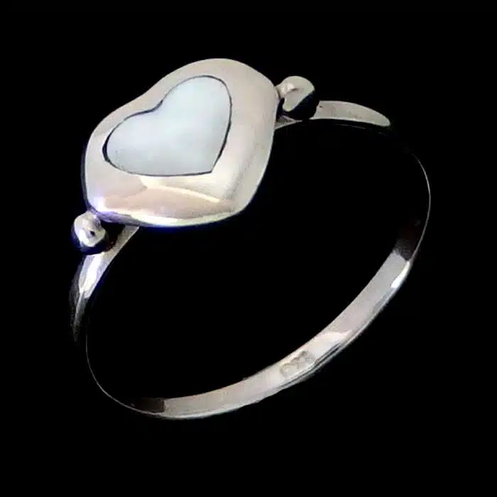 Mother Pearl Heart Ring NZ is made from sterling silver and features a 92.5 stamp. This means it is 92.5% fine silver with no more than 7.5% of copper or other metals. This formula is internationally accepted and it gives sterling silver the hardness and the tolerance to work with. Anything higher than 92.5 would be too soft and tarnish too quickly. When you buy sterling silver from us, we can guarantee it is just that!
