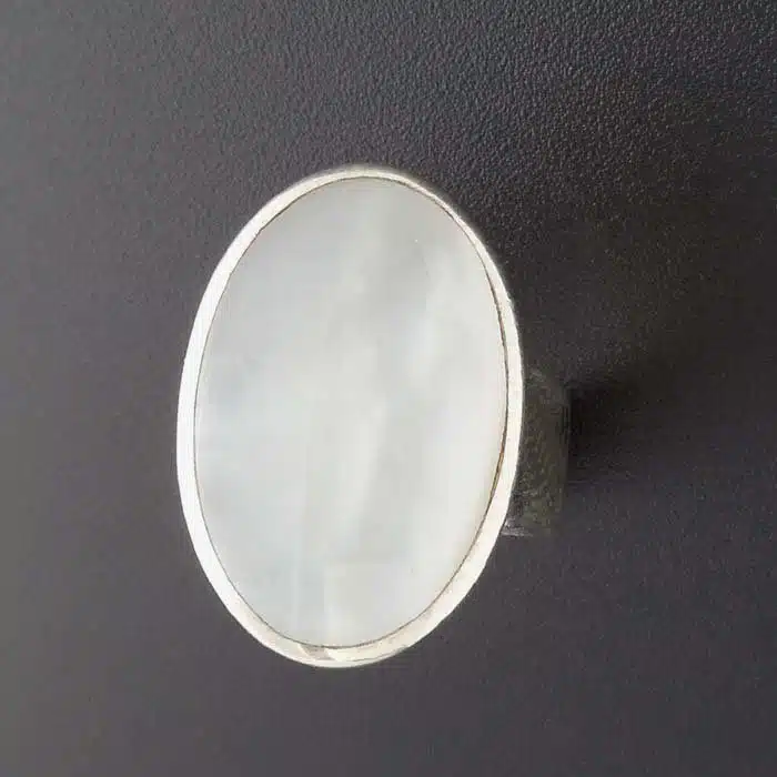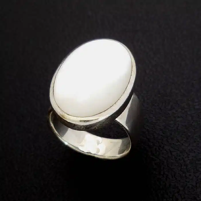 This oval shell ring is made from sterling silver and features a 92.5 stamp. This means it is 92.5% fine silver with no more than 7.5% of copper or other metals. This formula is internationally accepted and it gives sterling silver the hardness and the tolerance to work with. Anything higher than 92.5 would be too soft and tarnish too quickly. When you buy sterling silver from us, we can guarantee it is just that!
