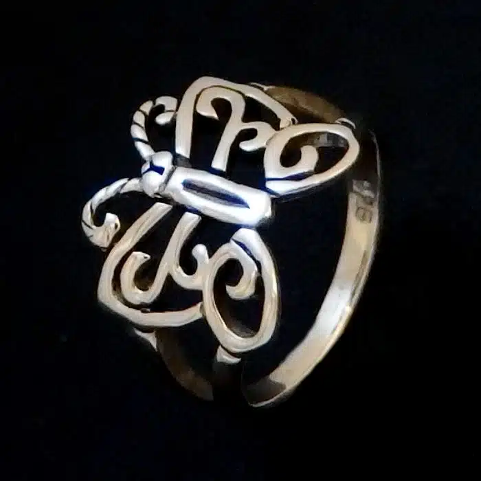 This spiral butterfly ring is made from sterling silver and features a 92.5 stamp, this means it is 92.5% fine silver with no more than 7.5% of copper or other metals. This formula is internationally accepted and it gives sterling silver the hardness and the tolerance to work with. Anything higher than 92.5 would be too soft and tarnish too quickly. When you buy sterling silver from us we can guarantee it is just that!