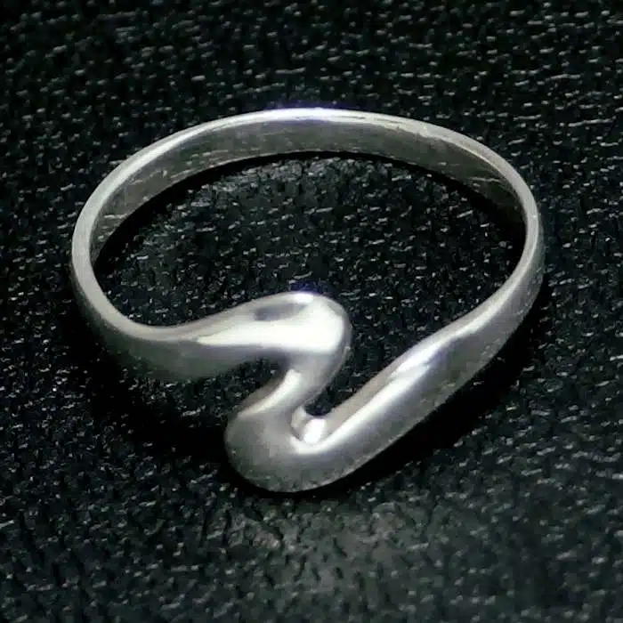 This smooth zig zag ring is made from sterling silver and features a 92.5 stamp and is highly polished. This means it is 92.5% fine silver with no more than 7.5% of copper or other metals. This formula is internationally accepted and it gives sterling silver the hardness and the tolerance to work with. Anything higher than 92.5 would be too soft and tarnish too quickly. When you buy sterling silver from us, we can guarantee it is just that!