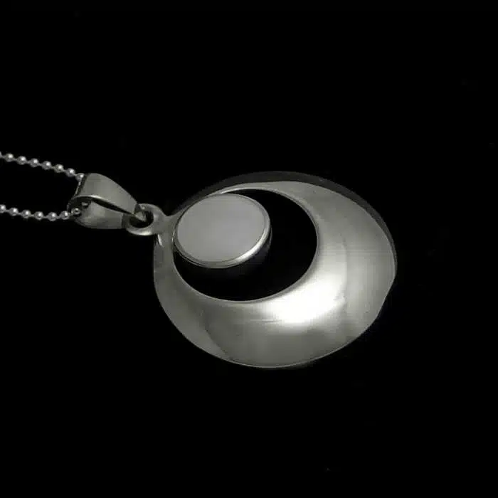 Silver Circles Shell Necklace is sterling silver 92.5. It features a small circular shell inside cut out convex cirlces. Commitment Love Circle necklace is perfect for your girlfriend or friend. A simple design but also striking.