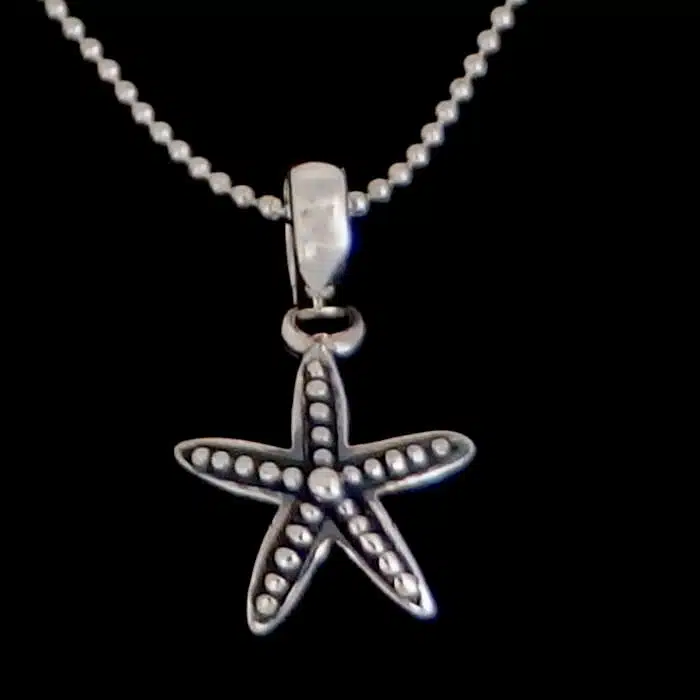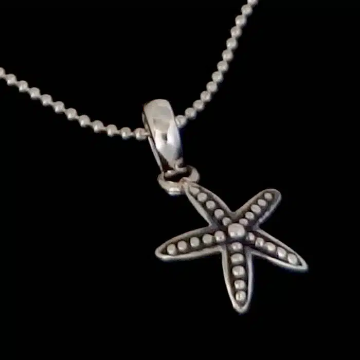The Silver Starfish Necklace Pendant is made from sterling silver and features a 92.5 stamp, this means it is 92.5% fine silver with no more than 7.5% of copper or other metals. This formula is internationally accepted and it gives sterling silver the hardness and the tolerance to work with. Anything higher than 92.5 would be too soft and tarnish too quickly. When you buy sterling silver from us we can guarantee it is just that!