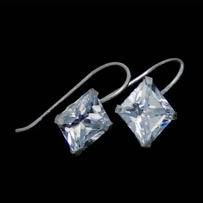 The Square CZ Earring features a single square cubic zirconia stone on a simple sterling silver hook. These Cubic Zirconia Earrings are simple yet classy.