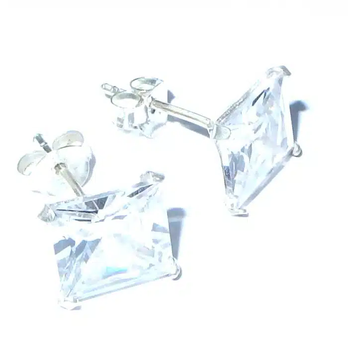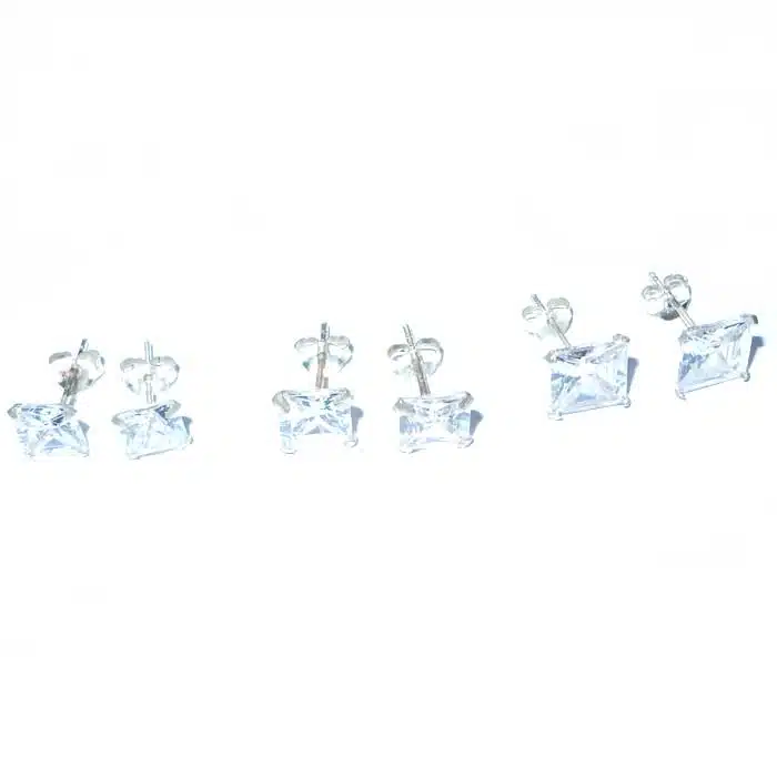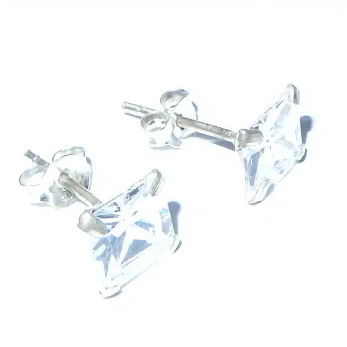 These Square CZ Stud pair is made from sterling silver. The butterfly features a 92.5 stamp. This means it is 92.5% fine silver with no more than 7.5% of copper or other metals. This formula is internationally accepted and it gives sterling silver the hardness and the tolerance to work with. Anything higher than 92.5 would be too soft and tarnish too quickly. When you buy sterling silver from us, we can guarantee it is just that!
