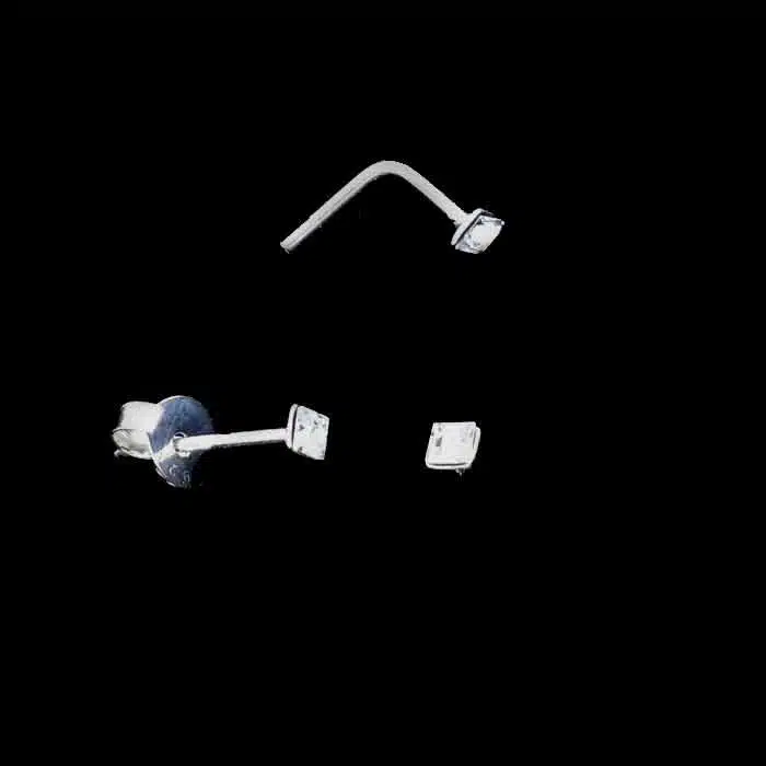 Square jewel nose stud in sterling silver. So many colours to choose from. The jewel is glued in and lays flat on the nose. You can bend it slightly or keep it straight. Square Jewel Nose Stud is sent with butterfly. But please be careful as usually when worn in the nose, you do not put the butterfly on, as this can be quite dangerous if sniffed up. This Square Jewel Nose Stud can also be worn as a little earring in the ear lobe with the butterflies attached. It always good to carry around a spare as it is so easy to lose a nose stud.