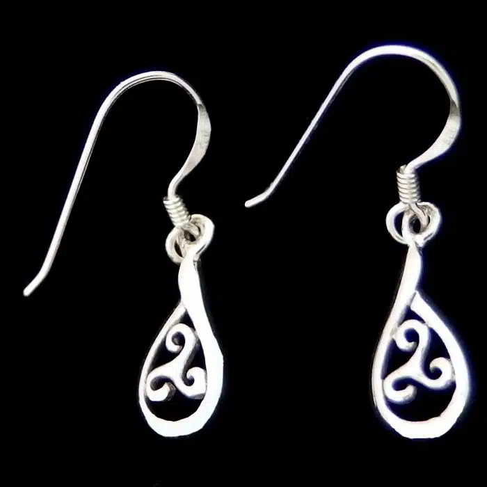 Tear Drop Celtic Triskele Earrings are shaped as a tear drop and have a cut out Celtic Triskele in the centre. These Celtic Triskele Earrings are small and sweet without too much dangle.